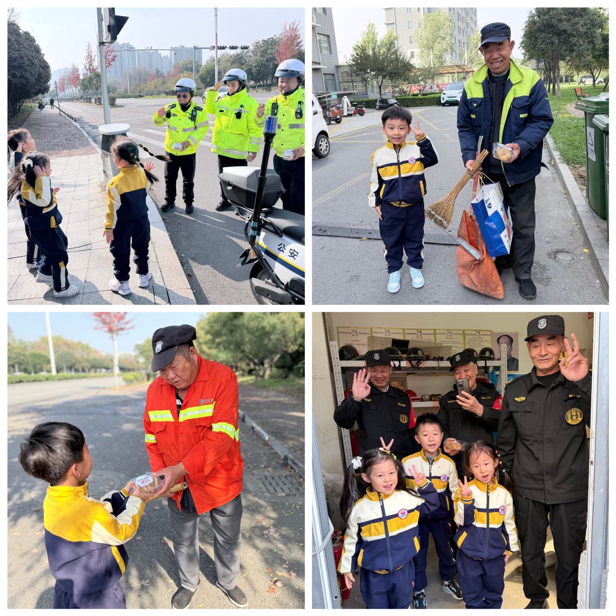 活动尾声,课堂感悟延伸至社区实践。在老师们的引领下,孩子们手捧园所自制点心走进社区、街道,将饱含童真与敬意的节日祝福亲手赠予社区长者。稚嫩问候与香甜的点心交织重阳动人画面,让尊老爱幼美德在真实互动中内化于心、外化于行。